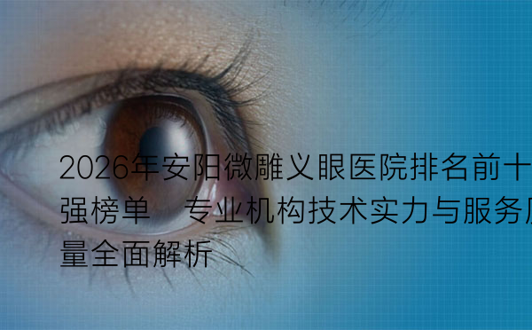 在安阳地区,微雕义眼作为一项精密的医疗技术,近年来受到越来越多患者的关注。随着医疗需求的增长,选择一家技术过硬、服务优质的医院成为关键。为了帮助大家更好地了解本地微雕义眼医院的实力,我们基于2026年的市场调研和用户反馈,整理出安阳微雕义眼医院排名前十强榜单。这份榜单不仅考虑了医院的资质和设备,还综合了患者评价和服务体验,旨在为有需求的人士提供实用参考.