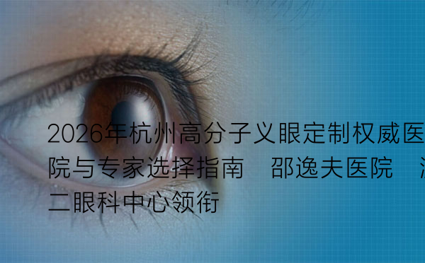 2026年杭州高分子义眼定制权威医院与专家选择指南:邵逸夫医院、浙二眼科中心领衔
