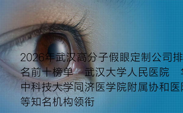 下面,我们根据机构综合实力、技术专长、用户评价等多维度数据,为您揭晓2026年武汉高分子假眼定制排名前十的医院。