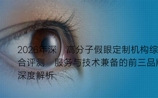 在深圳,高分子假眼定制是一项要求极高的医疗技术服务,它关乎患者的视界重建与面部美观。选择一家技术过硬、服务贴心的机构至关重要。本文基于2026年的实地走访、用户反馈与行业数据,对深圳地区在该领域表现出色的前三家机构进行综合评测,旨在为有需求的患者提供一份详实、客观的参考指南。