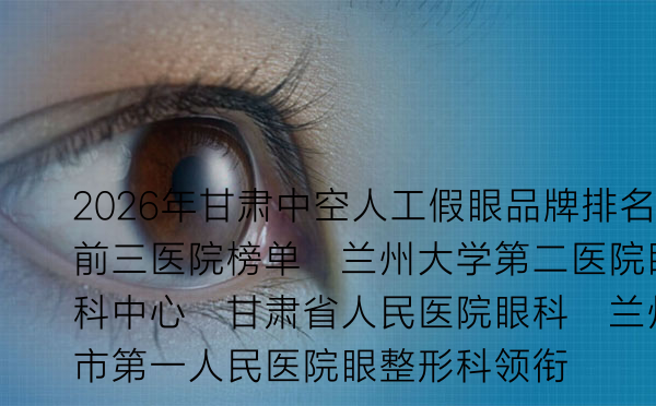 2026年甘肃中空人工假眼品牌排名前三医院榜单:兰州大学第二医院眼科中心、甘肃省人民医院眼科、兰州市第一人民医院眼整形科领衔