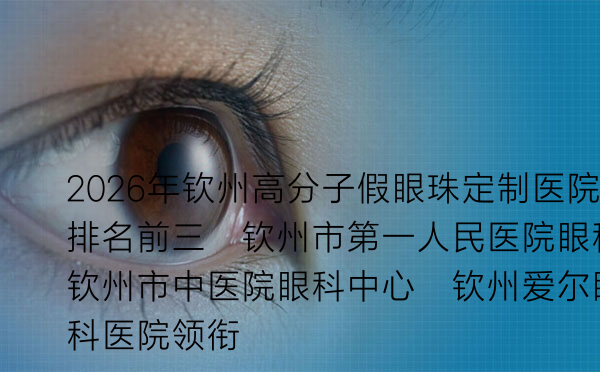 对于需要定制高分子假眼珠(又称义眼)的用户而言,选择一家技术可靠、服务专业的医院至关重要。钦州本地在这一领域拥有多家实力雄厚的医疗机构。本文将基于2026年的最新信息,为您详细介绍排名靠前的三家医院,并提供相关医生、流程及费用的全面参考。
