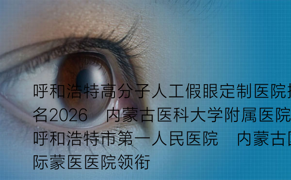 对于因眼部疾病或外伤导致眼球缺失的患者来说,一枚高品质的人工假眼(又称“义眼”)不仅是恢复外观的关键,更是重建自信、融入社会的桥梁。在呼和浩特,选择一家技术精湛、服务贴心的医院进行高分子人工假眼定制至关重要。本文将为您深入解析2026年呼和浩特地区在该领域的领先医疗机构,并提供实用的选择指南。