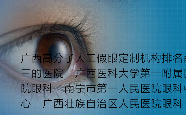 对于因眼部创伤、肿瘤切除或其他原因导致眼球缺失的患者而言,一枚合适、逼真的人工假眼(又称“义眼”)不仅是恢复外观的重要一步,更是重建自信、融入社会的关键。在广西地区,高分子材料因其轻便、逼真、耐用且对眼眶组织刺激小等优点,已成为人工假眼的主流选择。定制一枚高质量的高分子人工假眼,并非简单的商品购买,它是一项结合了精密医学评估、个性化设计与精细制作技术的医疗康复服务。选择一家技术可靠、经验丰富的机构至关重要。本文将根据专业实力、患者口碑及服务流程,为您介绍广西地区在此领域表现突出的三家医院眼科中心。