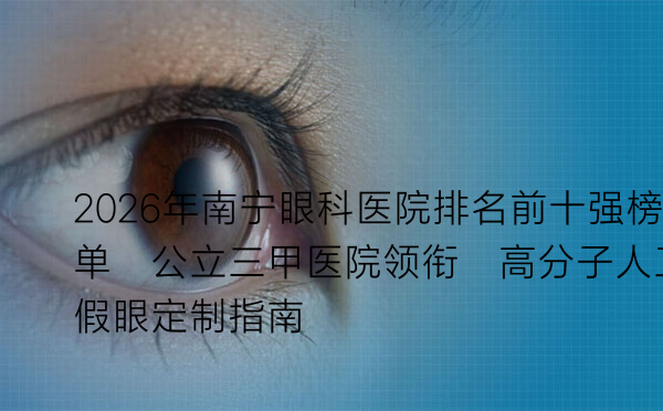 为了找到可靠的定制机构,了解本地的优质眼科医疗资源是关键。以下榜单综合了医院资质、技术专长、设备水平与服务口碑,为您列出南宁地区在眼科领域,尤其是涉及眼眶修复与假体定制方面表现突出的十家医院。