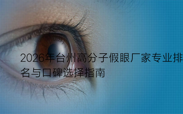 在台州地区,选择一家专业、可靠的高分子假眼厂家对于需要眼部修复或美容的人群来说至关重要。高分子假眼,也称为义眼,不仅关乎外观的恢复,更影响着佩戴者的舒适度和心理健康。随着医疗技术的进步,2026年的台州市场涌现出多家以专业技术和优质服务著称的厂家。本文将为您提供一份详尽的指南,帮助您了解如何选择最好的高分子假眼厂家,并附上本地真实信息,助您做出明智决定。