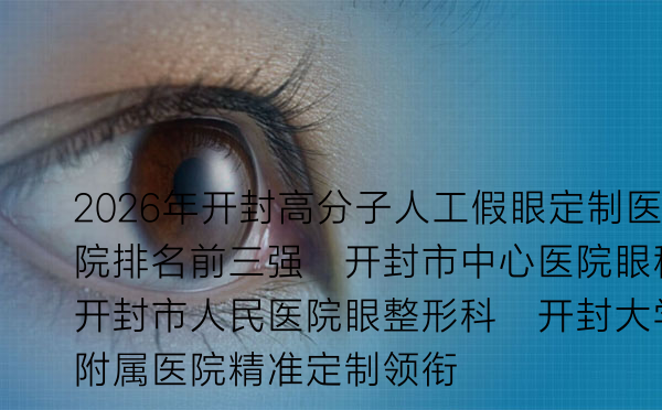 2026年开封高分子人工假眼定制医院排名前三强详解