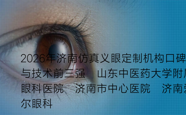 在济南,树脂人工假眼定制服务通常由大型公立医院的眼科中心或专业的眼科医院提供。经过综合考量技术实力、用户口碑、定制经验与服务水平,以下三家机构在本地享有较高的声誉。