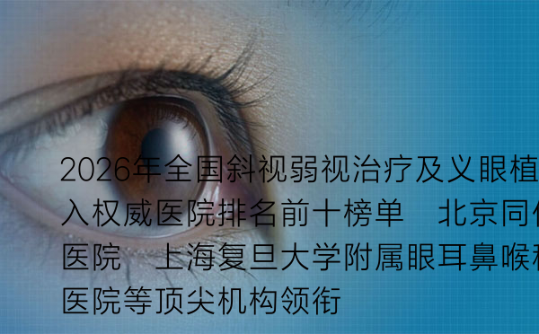 2026年全国斜视弱视治疗及义眼植入权威医院排名前十榜单:北京同仁医院、上海复旦大学附属眼耳鼻喉科医院等顶尖机构领衔