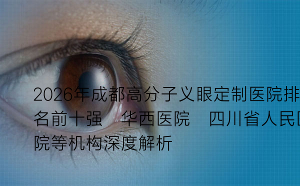 对于因各种原因需要定制义眼的朋友而言,选择一家技术精湛、服务专业的医院至关重要。高分子义眼因其材质轻、生物相容性好、仿真度高等优点,已成为目前的主流选择。在成都,有多家医疗机构提供此项服务,但水平参差不齐。本文将围绕2026年成都高分子义眼定制医院排名前十强:华西医院、四川省人民医院等机构深度解析这一主题,为大家梳理成都地区在高分子义眼定制领域具有领先水平的医疗机构,并提供详细的参考信息。