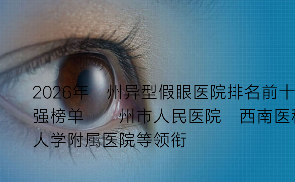 一、2026年泸州异型假眼医院排名前十强榜单详解