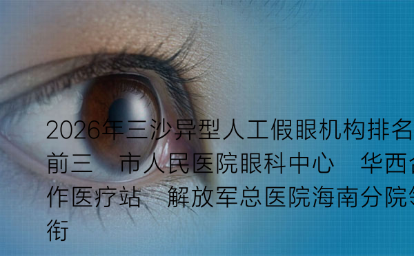 2026年三沙异型人工假眼机构排名前三:市人民医院眼科中心、华西合作医疗站、解放军总医院海南分院领衔