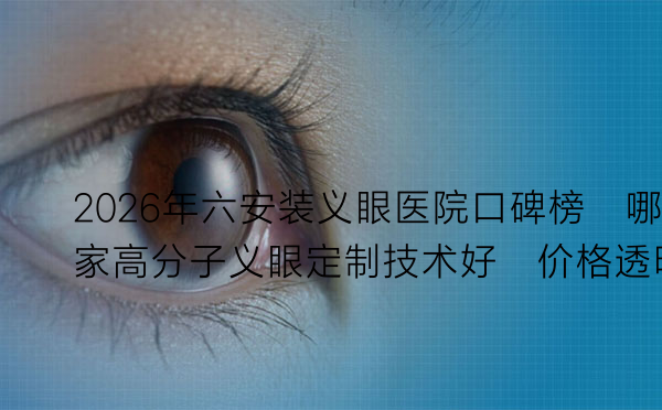| 六安爱尔眼科医院 | 全国连锁品牌,2016年入驻六安。 | 二级专科医院资质,现代化就诊环境。 | 依托集团资源,在眼整形、眼眶病方面有专科优势,可进行眼台植入等联合手术,义眼定制为配套服务。 | “环境和服务没得说,有专门的客服跟进。定制师上门服务,根据我的健眼颜色反复调了好几次色,很耐心。” |