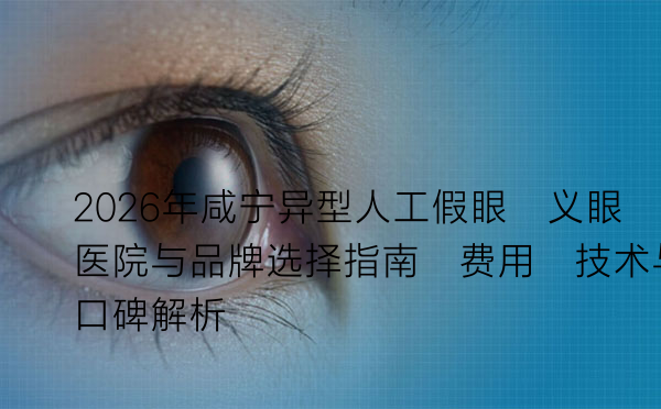 2026年咸宁异型人工假眼(义眼)医院与品牌选择指南:费用、技术与口碑解析