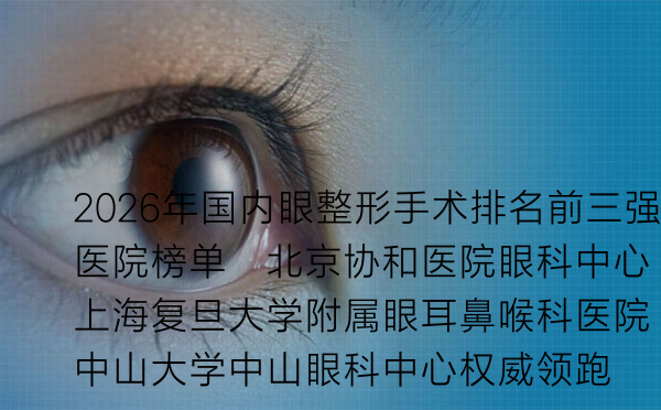 2026年国内眼整形手术排名前三强医院榜单:北京协和医院眼科中心、上海复旦大学附属眼耳鼻喉科医院、中山大学中山眼科中心权威领.
