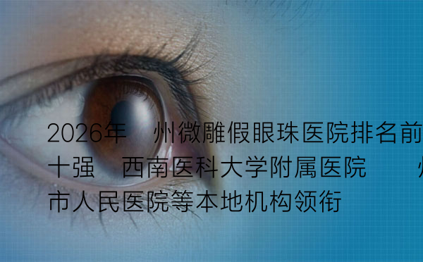 2026年泸州微雕假眼珠医院排名前十强:西南医科大学附属医院、泸州市人民医院等本地机构领.