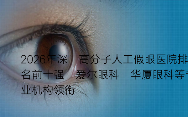 2026年深圳高分子人工假眼医院排名前十强:爱尔眼科、华厦眼科等专业机构领衔