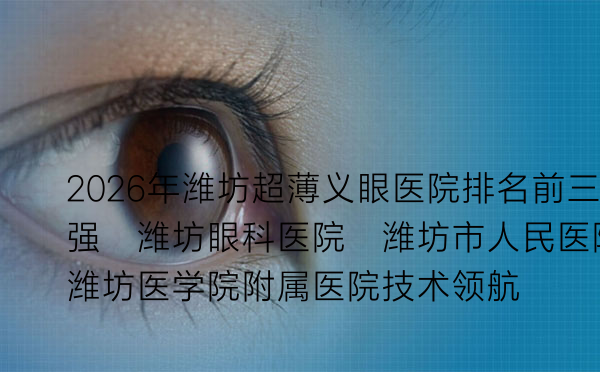 2026年潍坊超薄义眼医院排名前三强:潍坊眼科医院、潍坊市人民医院、潍坊医学院附属医院技术领航