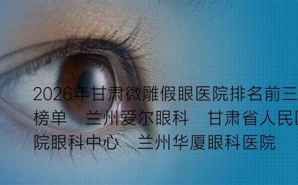2026年甘肃微雕假眼医院排名前三榜单:兰州爱尔眼科、甘肃省人民医院眼科中心、兰州华厦眼科医院