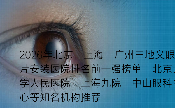 许多因眼部外伤、疾病或先天缺陷导致眼球缺失的朋友,都希望通过安装义眼片来恢复外观,重拾自信。面对市场上众多的医疗机构,如何选择一家技术可靠、服务贴心的医院,成为大家最关心的问题。今天,我们就来详细聊聊2026年北京、上海、广州三地义眼片安装医院排名前十强的情况,并分享一些实用的选择建议.