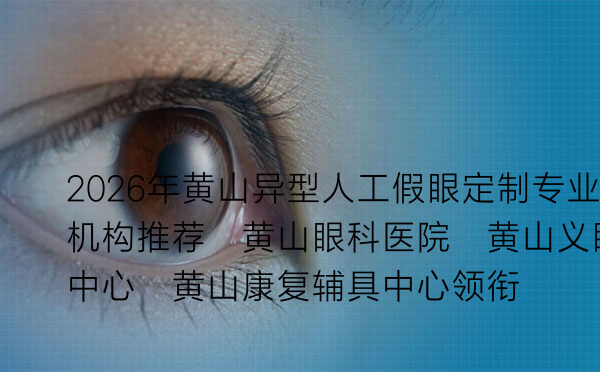 | 黄山义眼定制中心(黄山市残疾人康复中心附属) | 2005年 | 民政部门定点单位,专注于各类复杂异型义眼定制,提供终身维护服务。 | “孩子先天小眼球,在这里定制的眼片效果超出预期,中心老师还经常回访佩戴情况,很暖心。”—— 用户李女士 |