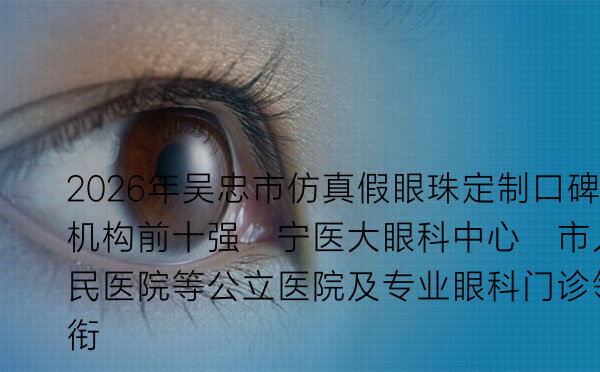 (鉴于篇幅,第7至第10名机构在此简述:7. 吴忠市妇幼保健院儿童眼科中心——擅长儿童义眼定制;8. 吴忠康复医院眼科康复科——侧重术后康复与适配;9. 吴忠明视眼科诊所——在复杂眼窝重建方面有经验;10. 吴忠华美医疗美容门诊部眼部整形科——与美容整形结合,注重外观美学。)