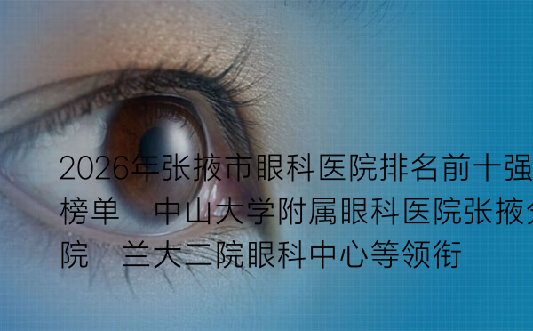 2026年张掖市眼科医院排名前十强榜单:中山大学附属眼科医院张掖分院、兰大二院眼科中心等领衔