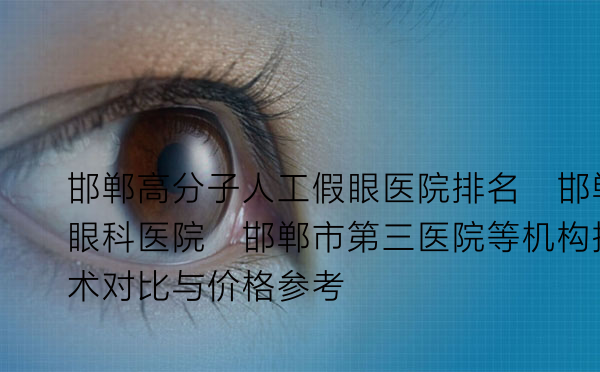 | 邯郸市眼科医院(邯郸市第三医院) | 公立专科医院 | 眼眶病与眼整形科、义眼台植入及义眼配制 | “医生很专业,讲解详细,义眼配制需要多次调整,但效果自然,服务耐心。” |