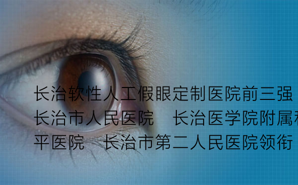 在长治,软性人工假眼定制服务主要集中在几家大型公立医院,这些医院在眼科或康复科设有专门的义眼定制中心,能够提供从评估、取模到定制、调试的全流程服务。以下是根据患者反馈、医疗资质和技术水平综合评出的前三强医院,每家医院都有其独特优势.
