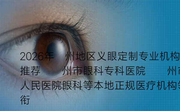 2026年亳州地区义眼定制专业机构推荐:亳州市眼科专科医院、亳州市人民医院眼科等本地正规医疗机构领衔