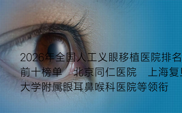2026年全国人工义眼移植医院排名前十榜单:北京同仁医院、上海复旦大学附属眼耳鼻喉科医院等领衔