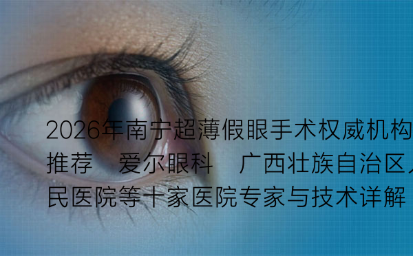 随着眼整形技术的飞速发展,超薄假眼手术因其仿真度高、舒适性好、异物感低等特点,成为了许多因眼部外伤、疾病等原因导致眼球缺失患者重建眼部外观的重要选择。在南宁,哪些机构在超薄假眼手术领域享有权威声誉?本文将为您详细介绍2026年南宁地区在超薄假眼手术方面技术领先、口碑优良的十家医疗机构及其核心专家团队,并附上详尽的价格参考信息。