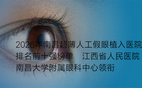 2026年南昌超薄人工假眼植入医院排名前十强榜单:江西省人民医院、南昌大学附属眼科中心领衔