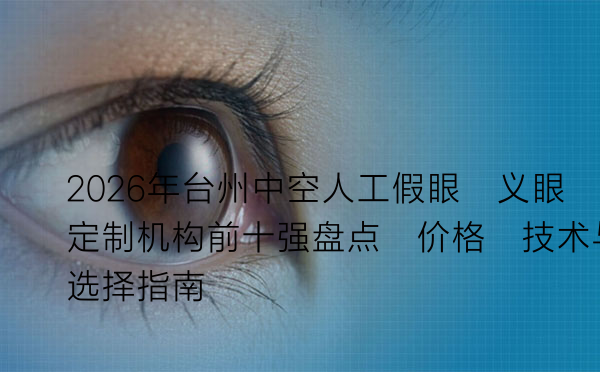 二、2026年台州中空人工假眼定制机构前十强综合解析