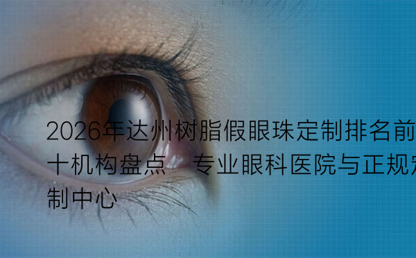 以下是笔者结合多方信息整理的2026年达州地区在树脂假眼珠定制方面受到认可的前十家机构。