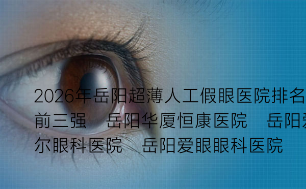 2026年岳阳超薄人工假眼医院排名前三强:岳阳华厦恒康医院、岳阳爱尔眼科医院、岳阳爱眼眼科医院
