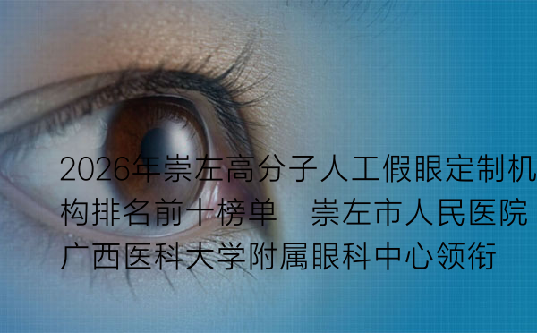 在寻求高分子人工假眼定制时,选择一家专业可靠的机构至关重要。崇左地区近年来眼科医疗水平不断提升,多家机构在假眼定制领域积累了丰富经验。本文将为您梳理2026年崇左地区备受认可的十家机构,助您做出明智决策.