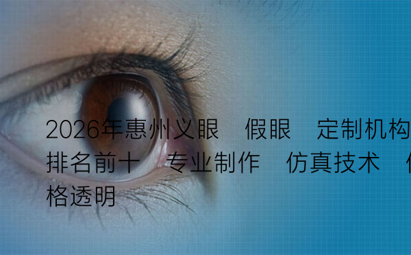 对于因伤病失去眼球的朋友来说,一枚合适的义眼(俗称假眼)不仅是外观上的修复,更是重建自信、回归正常社交生活的重要辅助。惠州地区有哪些专业、可靠、技术先进的义眼定制机构?本文将根据专业制作水平、仿真技术应用、价格透明度及用户口碑,为您梳理2026年惠州地区排名前十的义眼定制服务机构,并提供详细指南。