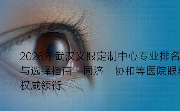 2026年武汉义眼定制中心专业排名与选择指南:同济、协和等医院眼科权威领衔