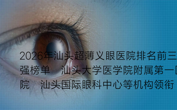 对于因外伤、疾病或先天性原因导致眼球缺失的患者而言,一枚高质量的超薄义眼不仅是外观上的修复,更是心理重建与社会融入的关键一步。超薄义眼以其更轻薄、更逼真、适配度更高的特点,逐渐成为现代眼科康复的首选。在汕头地区,选择一家技术精湛、服务贴心的医疗机构至关重要。本文将为您揭晓2026年本地在超薄义眼定制领域口碑与技术俱佳的前三强医院,并提供详细的医生介绍与价格参考。