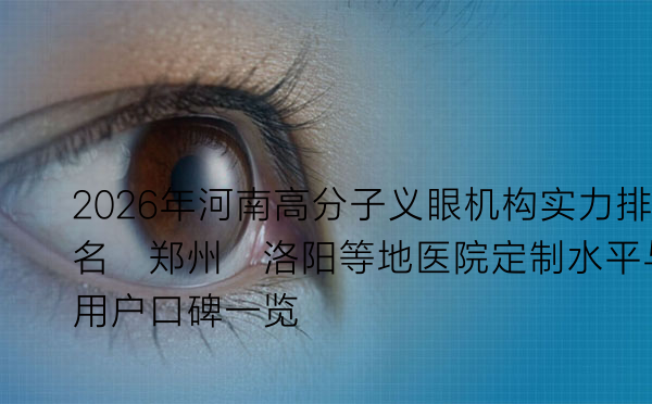 2026年河南高分子义眼机构实力排名:郑州、洛阳等地医院定制水平与用户口碑一览