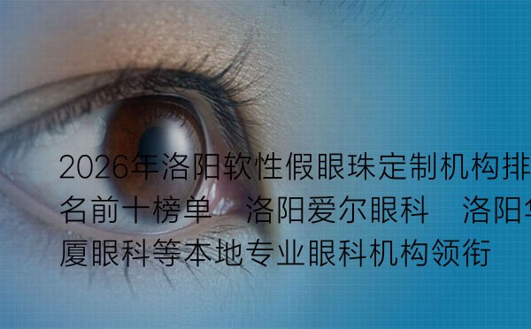 2026年洛阳软性假眼珠定制机构排名前十榜单:洛阳爱尔眼科、洛阳华厦眼科等本地专业眼科机构领衔
