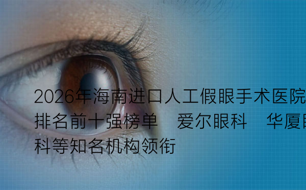2026年海南进口人工假眼手术医院排名前十强