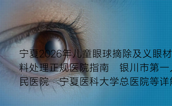 在宁夏地区,当儿童因眼部严重疾病或外伤需要摘除眼球并处理义眼材料时,选择一家正规、专业且经验丰富的医院至关重要。这不仅关系到手术的安全与成功率,更影响着孩子术后的恢复效果和生活质量。面对网络上繁杂的信息,家长们往往感到迷茫和焦虑。本文将基于本地实际情况,为您提供一份清晰、实用的医院选择指南,重点介绍宁夏地区几家在儿童眼部手术领域具有权威地位的医疗机构,并附上相关医生信息及价格参考。