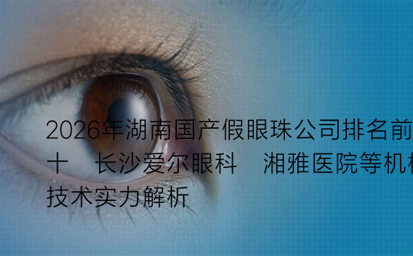 二、 2026年湖南国产假眼珠公司排名前十