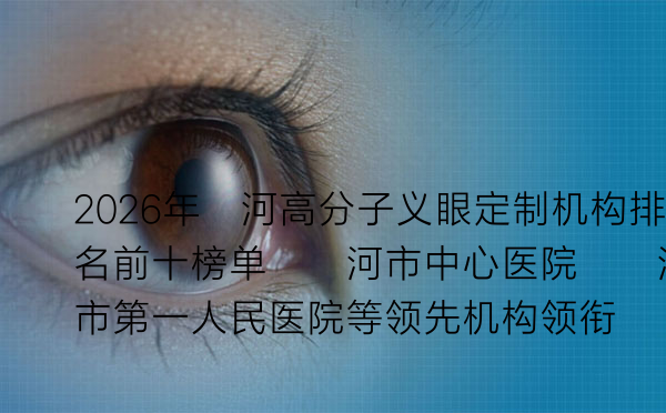 随着医疗技术的不断进步,高分子义眼已成为许多眼疾患者的重要选择。在漯河地区,如何选择一家专业、可靠的定制机构?本文将为您呈现2026年漯河高分子义眼定制机构的综合排名,帮助您做出明智的决定。