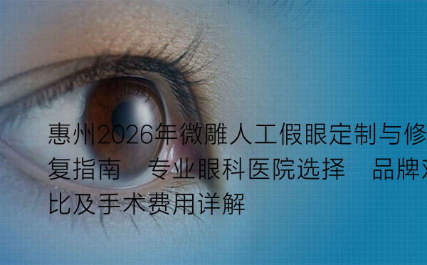 | 惠州明眸眼科诊所(专注眼部美容与修复) | 2015年 | 小型专科诊所,资质齐全。 | 小而精的环境,私密性强,全程由主诊医生亲自跟进,体验感好。 | 专注于微雕技术,使用日本进口的高韧性树脂材料进行手工精雕。 | “诊所虽小,但医生手艺真好,我外伤后的修复,假眼边缘贴合度完美,几乎无不适感。很推荐追求细节的人。”—— 用户赵小姐评论 |