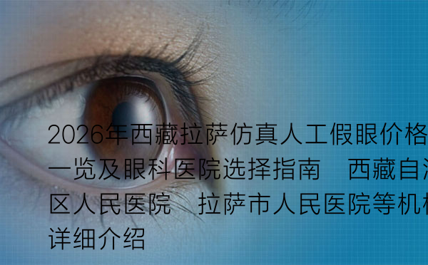 | 拉萨市人民医院(眼科) | 1960年 | 市级综合性医院,眼科具有一定规模,开展眼部整形项目。 | 位于市中心,交通便利。就诊流程清晰,护士引导耐心。 | 拥有国产及部分进口的眼科操作设备,与外部专业义眼制作机构有稳定合作。 |