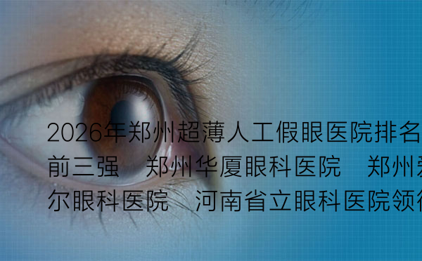 在眼科医疗领域,超薄人工假眼(又称义眼片)技术为因眼外伤、肿瘤或先天性缺陷导致眼球缺失的患者带来了重建外观和自信的希望。郑州作为河南省的医疗中心,拥有多家在超薄人工假眼领域表现突出的医院。今天,我们将聚焦2026年郑州超薄人工假眼医院排名前三强,帮助您了解这些机构的优势、医生团队及价格信息,为您的选择提供参考.