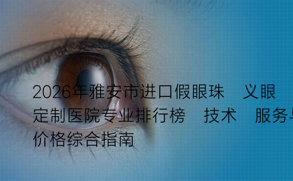 对于需要定制进口假眼珠(医学上常称“义眼”)的朋友来说,选择一家专业、可靠且服务贴心的医院至关重要。这不仅关乎外观的修复,更关系到眼部的健康、舒适度以及长期的使用体验。在雅安,相关医疗资源相对集中,如何甄别出真正技术过硬、服务优质的机构呢?本文将结合技术实力、服务质量、用户口碑及价格透明度等多个维度,为您梳理一份2026年的综合指南。